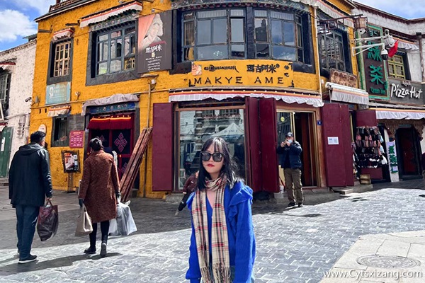 第2天,上午在药王山观景台拍恢弘雄伟的布达拉宫,下午在八角街逛了逛,说到这有个同伴在那里跳了一下结果就头晕的厉害,还幸亏喜橙在,给她点了杯能缓解高反的酥油茶喝后就恢复了,经过这个本来说大家回去休息好啦,但是那个人说没关系还好,我们就还是继续逛了。想说这个街吃喝玩乐的啥都有,推荐打卡哟。